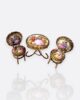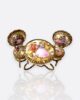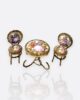 Rokoko dönemine ait pastoral sahneler, porselen üzerine el boyamasıyla işlenmiş; çevresi altın renkli bükme metal çerçevelerle süslenmiştir.