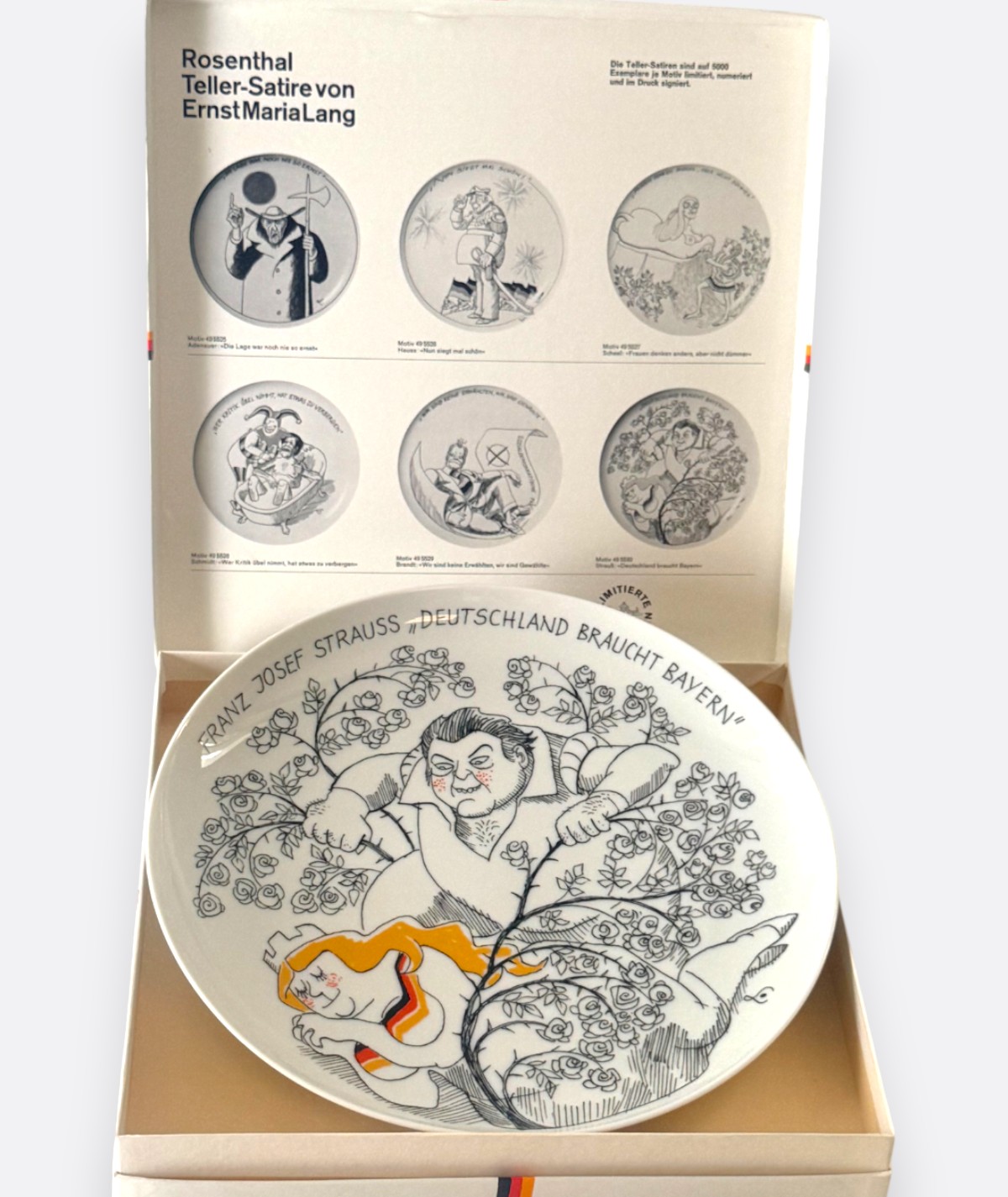 Bu parça, ünlü Alman karikatürist ve heykeltıraş Ernst Maria Lang’ın Rosenthal için tasarladığı politik hiciv serisinin bir parçasıdır.