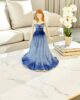 Zarif figür, parlak mavi (safir tonlarında) degrade bir elbise giymektedir.