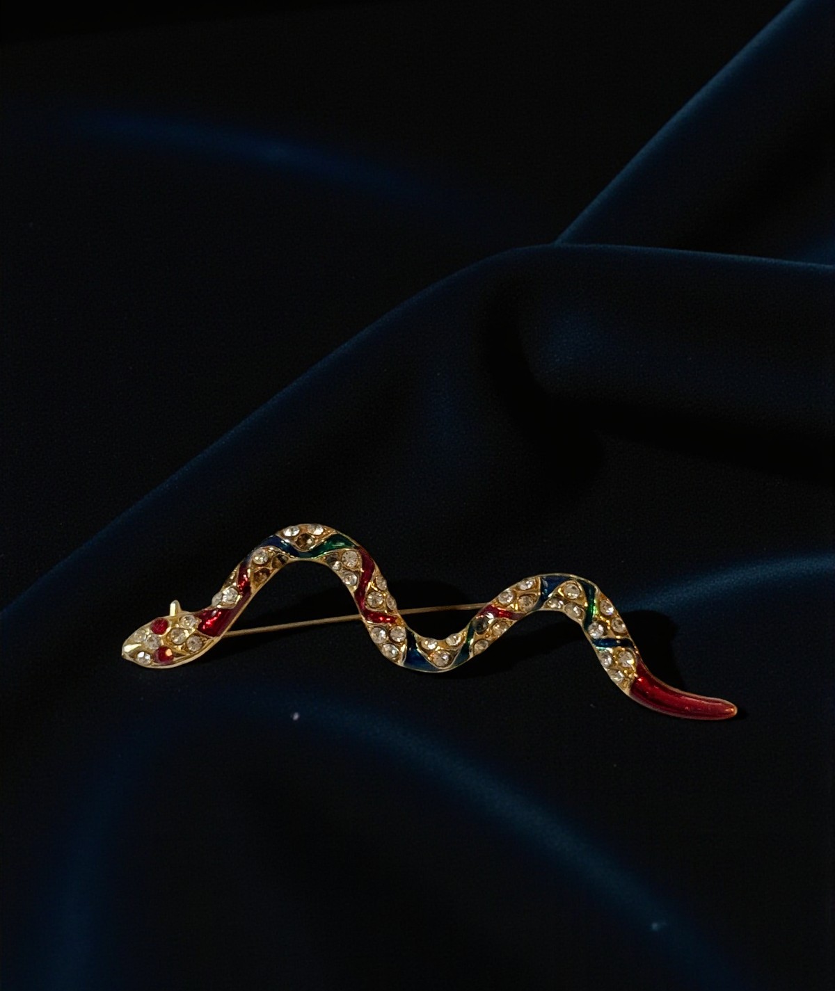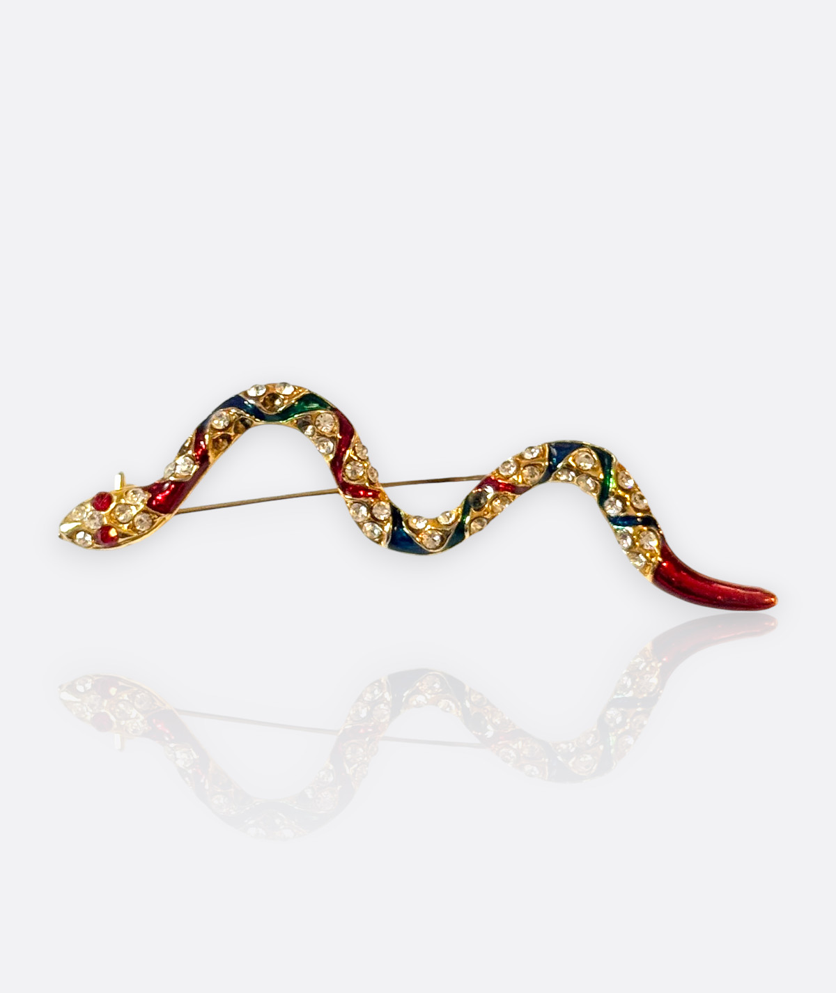 Yılan Broş – Renkli Emaye & Taşlı Vintage Takı