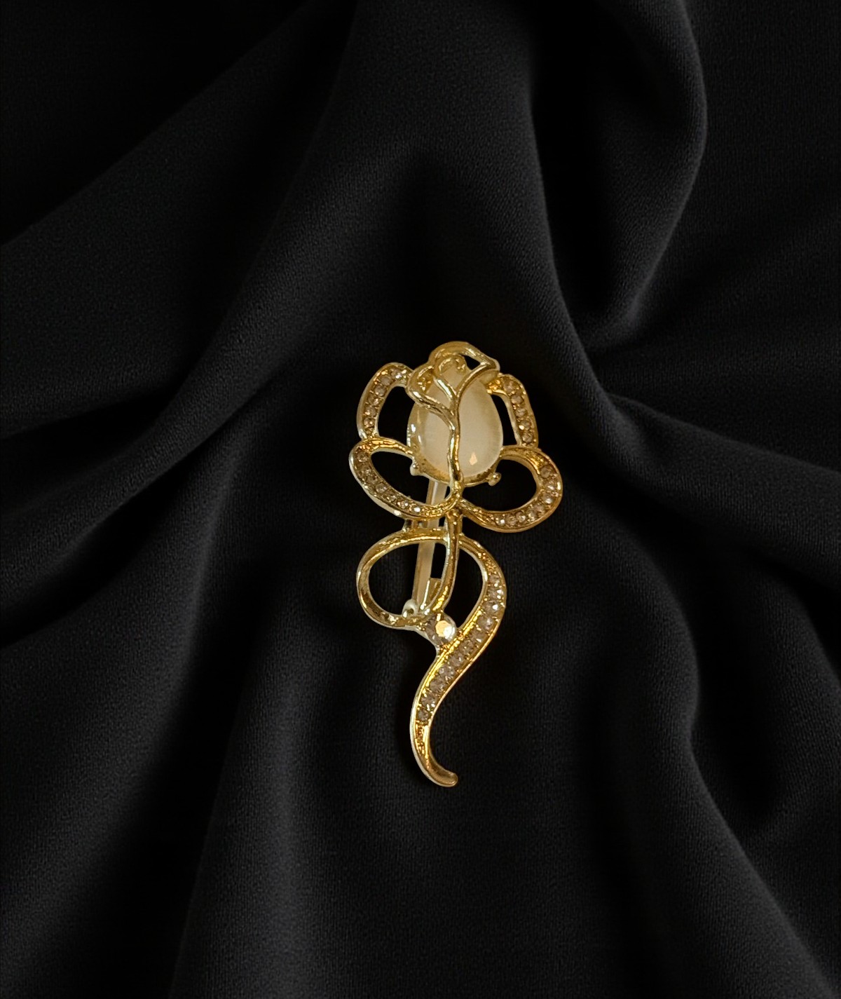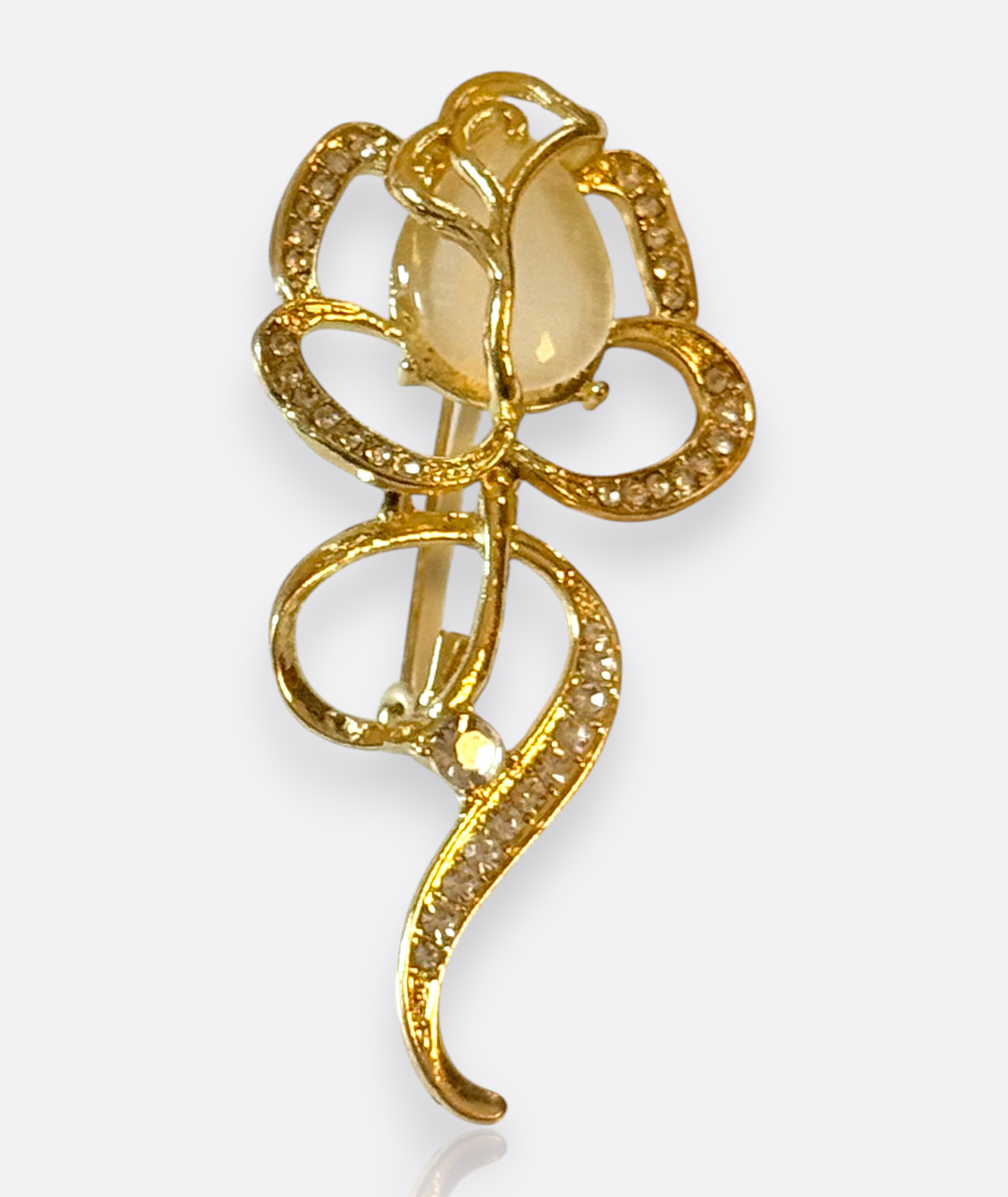 Altın Tonlu Çiçek Broş – Zarif Taşlı Tasarım